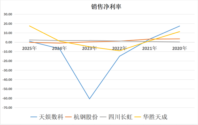 盈利能力:华胜天成>四川长虹>天娱数科>杭钢股份