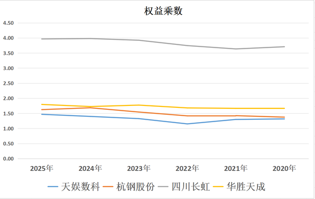目前,财务杠杆最高的是四川长虹,接近4倍,其次华胜天成,再次杭钢股份呢,再次天娱数科。